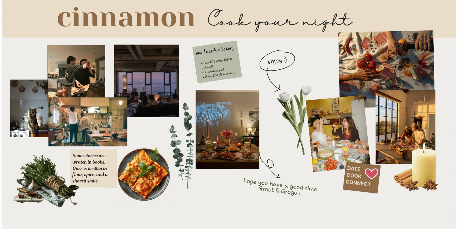 We directly solve the "authenticity" and "logistical friction" problems through a seamless, digitally-enabled experience: 1. A Complete Culinary "Adventure": The journey begins on our website, where customers easily book a session, select a culinary theme (e.g., "A Night in Marrakesh"), and pre-customize their experience. This includes choosing their music—they can select from our pre-curated playlists, build their own, or simply sync their personal Spotify account—and noting all dietary needs. Upon arrival, their private kitchen station is fully prepared with all the selected, high-quality ingredients and a simple-to-follow, gamified recipe card. This completely removes the "friction" of planning, shopping, and measuring, allowing the couple to focus purely on the experience. 2. A Distraction-Free Environment: The all-in-one nature of the pre-booked, pre-stocked kitchen encourages couples to put their phones away and dedicate time to a shared, tangible goal. The "recipe" is designed for collaboration, turning the process into an act of co-creation that builds trust and vulnerability. By making this deeply bonding activity accessible, easy, and fun, Cinnamon provides a tangible alternative to superficial dating rituals, directly fostering the genuine emotional connections that are essential for individual well-being and resilient communities.