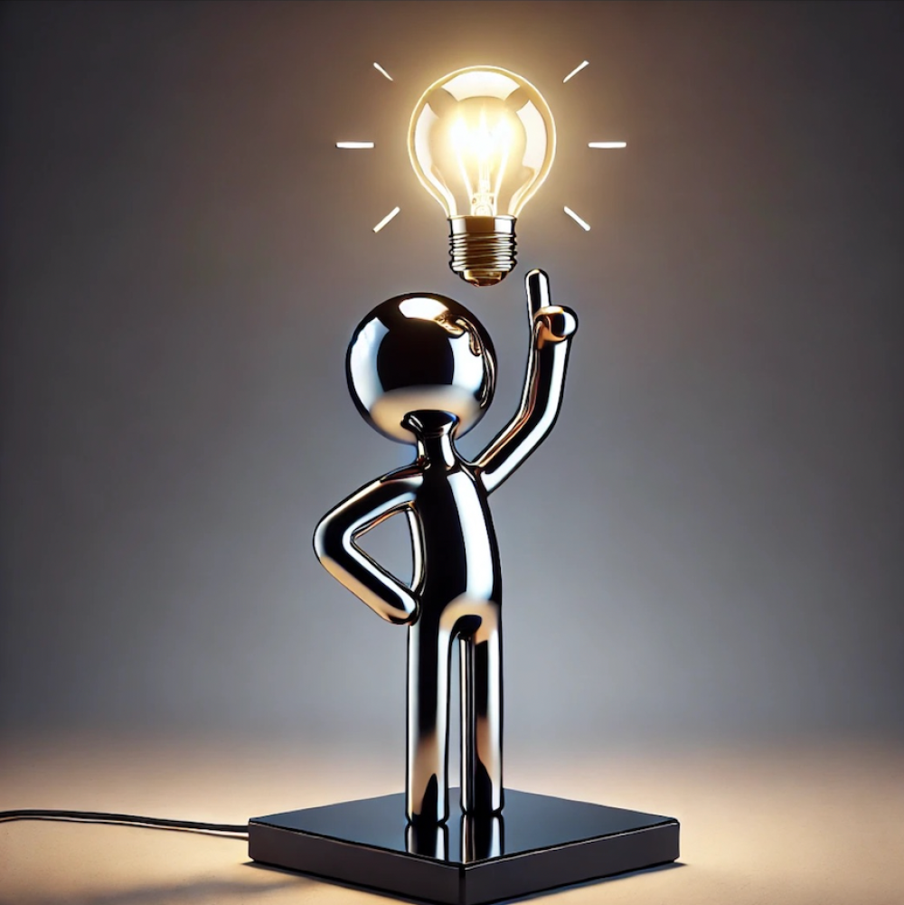 My first product will be a designer lamp that embodies the iconic "idea" symbol - a figure with a lightbulb above its head. Through a high-gloss finish and some other details I want to create a high-quality statement piece designed to inspire creativity, curiosity, and moments of joy in everyday life.