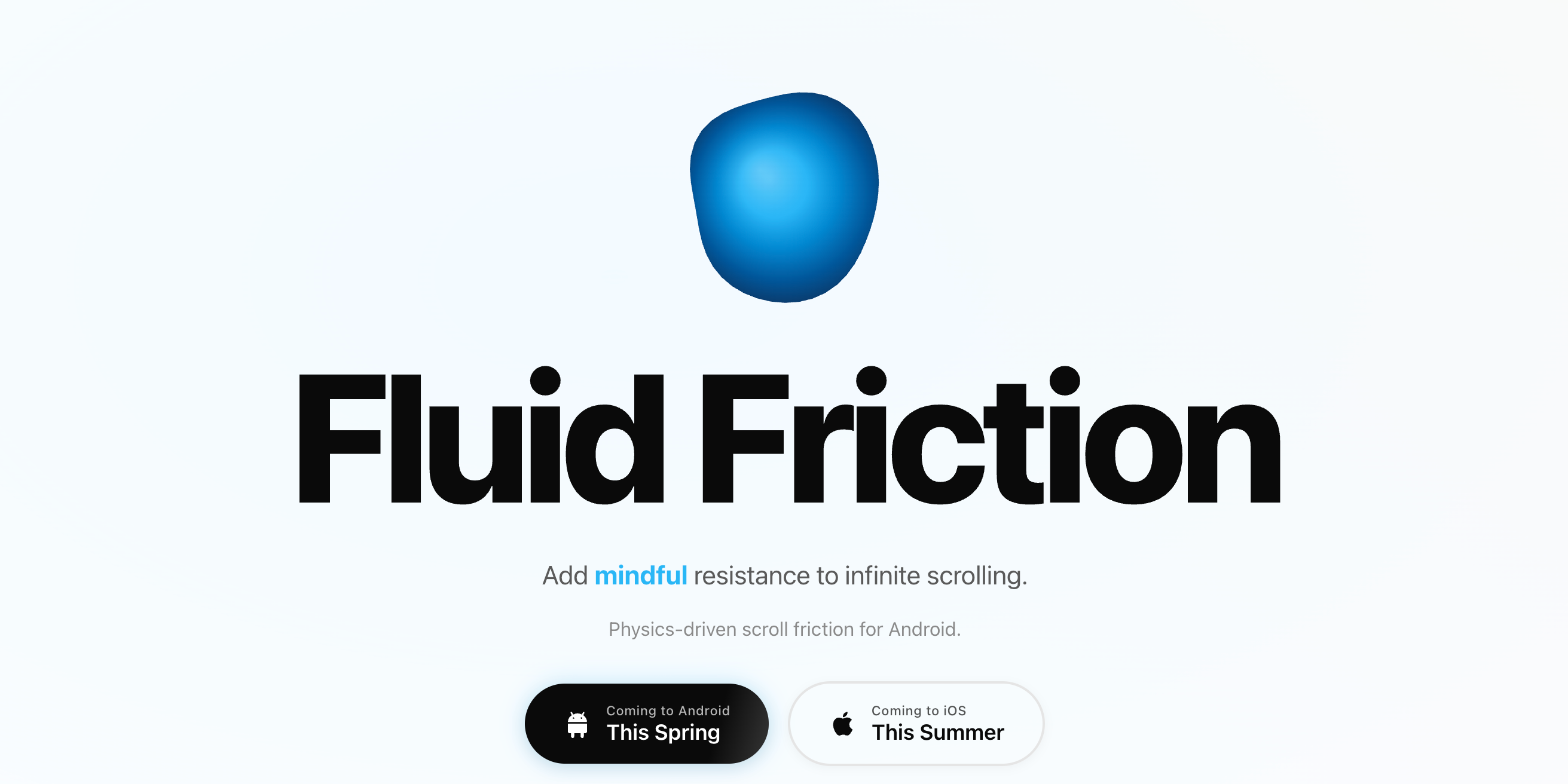Fluid Friction is built around one principle: every interaction with your phone should be intentional, not automatic. Reinvented Scrolling, Fluid Friction— When you swipe on apps like Instagram, TikTok, or YouTube, fluid rises from the screen edge and resists your finger. Pass the threshold and a bubble forms, breaks through, and lets the scroll happen. 93 themes, adjustable intensity, session limits. It doesn't block you. It just makes you mean it. Smart Friction — Friction that adapts to your day. Tighter during your morning lecture block, lighter when you're winding down after dinner. Protection that fits your rhythm, not the other way around. Blocking and Focus — Set daily limits per app, target specific features like Reels or Shorts without blocking the whole app, and add intervention challenges like breathing exercises or reflection prompts. Pair it with built-in Pomodoro timers for when it's time to lock in on an assignment. NFC Profiles — Tap your student card, a bank card, or a €1 sticker to instantly activate a blocking profile. Stick a tag on your desk and tap when it's time to study. No $59 hardware needed. Spatial Profiles — Connect to your university library Wi-Fi and distracting apps block automatically. Walk into your dorm and it relaxes. Fully opt-in, no manual switching, no forgetting before a study session. AI Coach — Nine coach personalities powered by on-device AI that analyze your habits, spot your vulnerability windows, and nudge you before a doom scroll starts. A pocket accountability partner that actually knows your patterns. Analytics — Track screen time with heatmaps, hourly breakdowns, and a 14-day behavioral engine that detects doom spiral triggers and peak-risk hours. See exactly where your time goes. Social — Compare digital health scores with friends, climb competitive ranks through daily quests, and access guided breathing and meditation. Reclaiming your screen time is easier when your friends are doing it with you. Fluid OS — A full Android launcher replacement with a widget dashboard, app drawer, and minimalist customizability. Your phone, redesigned around intention. Safety — Three-finger emergency disable, overlay auto-hides on lock screen and in DMs and sensitive apps. Your phone is never compromised when it matters. All of this. One app. Free. We are currently weeks away from launching on Android and IOS. We will monetize through in app themes, not by restricting features. For more information visit our website fluidfriction.app.